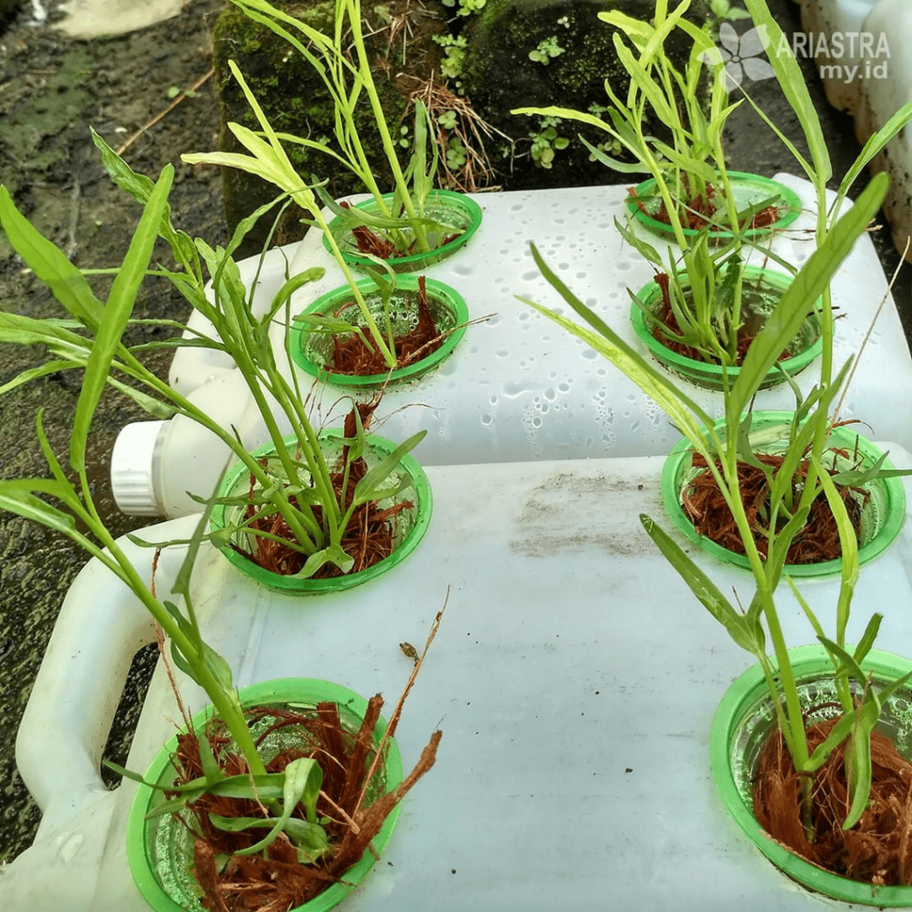• Kuantitas larutan nutrisi dikontrol agar tidak kering ataupun berlebih. Jumlah larutan berlebih biasanya karena kemasukan air hujan. Solusinya sederhana tinggal membuka tutup jerigen sehingga kelebihan air akan keluar.