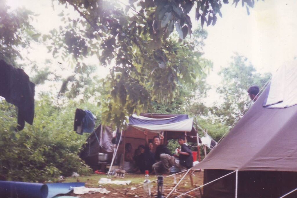 Kejadian yang tidak akan aku lupa di area camp ini adalah kejadian “lampu badai”. Suatu sore, dalam suasana yang santai, senior bertanya kenapa lampu badainya belum dinyalakan. Aku jawab dengan nada bercanda, “belum kak, kan belum ada badai, hehe”, di samping memang kondisinya memang masih terang. Namun, kurang dari semenit, tiba-tiba angin berhembus kencang…sangat kencang malah hingga tenda kelompok tetangga (aku lupa tenda milik siapa) tersingkap dan terbang. Tak seberapa lama angin pun reda, dan suasana kembali tenang. Kontan saja senior datang sambil bertanya dengan nada yang agak keras “Siapa tadi yang minta-minta badai?!”. hah, salah ngomong nih, bercanda tidak pada tempatnya. Hal lain yang aku ingat adalah ketika tengah malam yang disertai hujan deras, aku dan oche terbangun. Beberapa patok tenda kami lepas, dan air membanjiri bagian dalam tenda..atau setidaknya tempat kami berdua tidur. Akhirnya salah satu dari kami keluar, untuk membenarkan tenda daripada air yang mengalir membesar menjadi sungai. Pada saat mendirikan tenda di tengah terik , kami tidak memikirkan sistem drainase sebagai antisipasi hujan deras. Akibatnya ada “sungai” yang melintas di dalam tenda kami.
